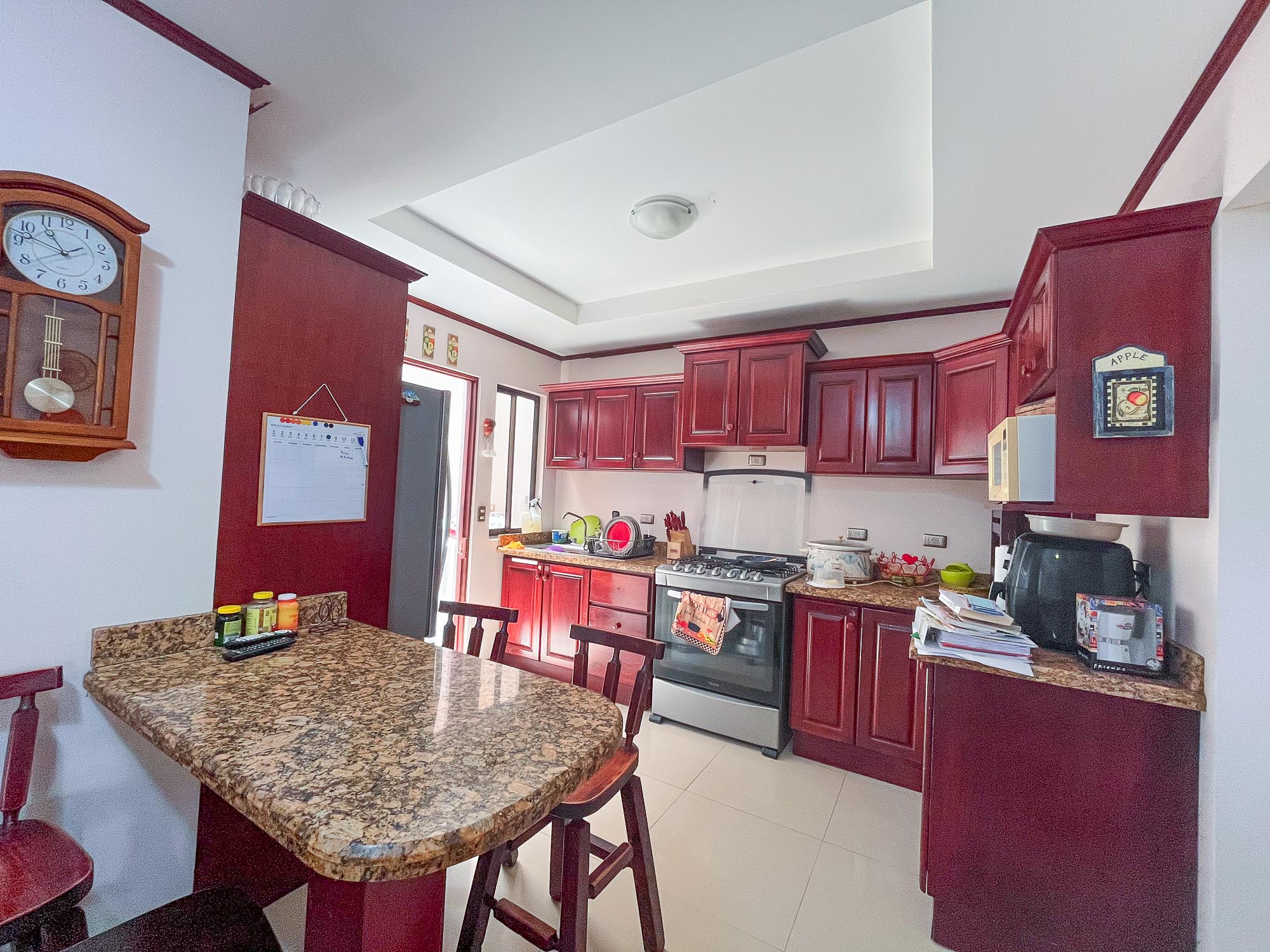 Cocina de acabados finos de madera y sobre de granito.